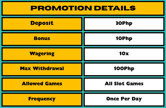 1. Get an EXTRA Php 10 added to your deposit included in this promotion.